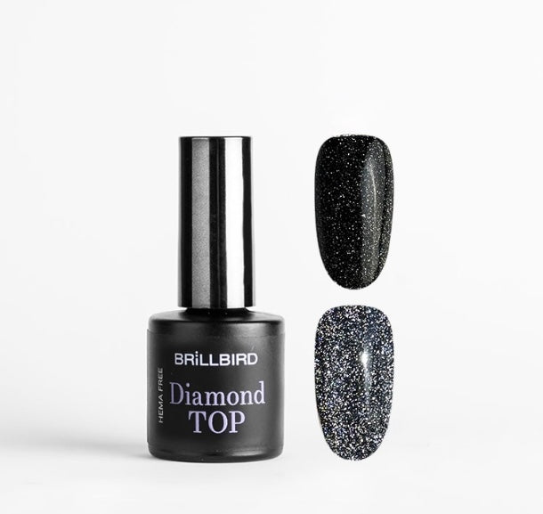 The Diamond Top is more than just a top coat. Its no-wipe, soak-off formula ensures effortless application, while the silver reflective glitters create the same mesmerizing effect as the beloved Hypnotic Diamond collection. Depending on the base colour and light exposure, it can deliver a subtle shimmer or a bold, dramatic sparkle. Under everyday lighting, it glows with a delicate twinkle, but when hit by a flash, it bursts into a breathtaking, colour-shifting brilliance.